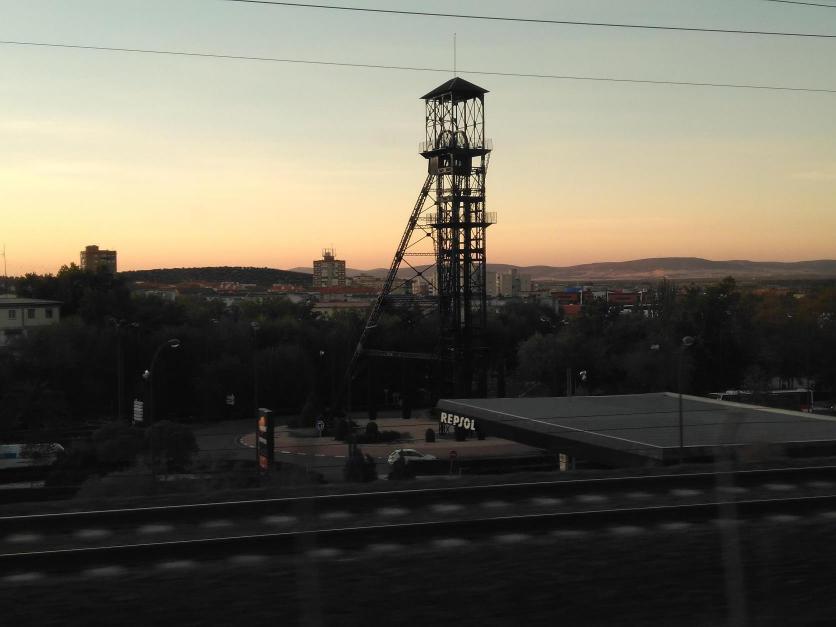 Atardecer con el castillete de mina,