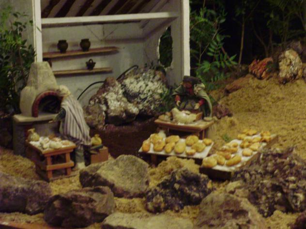 La verdad que como os decia tiene mérito, ya que todas o la mayoria de las figuras tienen movimiento, y podemos ver al herrero, al panadero, al alfarero, a las lavanderas, al mercader y a los niños como se mueven y juegan ante la mirada de todos los Puertollaneros que nos paramos a deleitarnos con todo ello