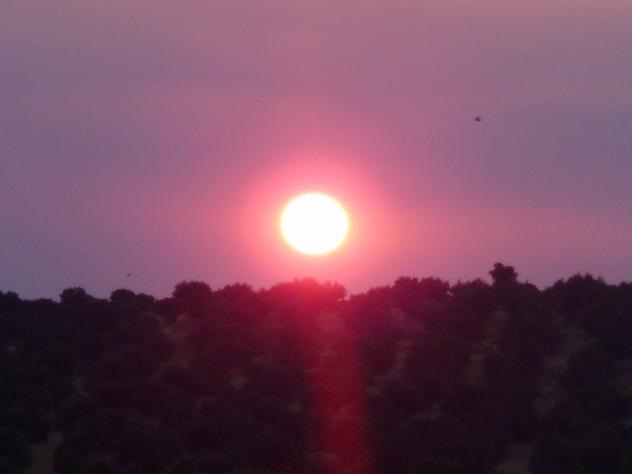 Bonita foto también, los pajarillos....... pobrecitos parecen que están cruzando el fuego. Esta es la imagen que tenia desde la ventana que hay en el pasillo de mi trabajo, ya veis... yo pensaba, pobres pajarillos esos que se ven cerca, como se atreveran a volar por ahi, claro que estan a años luz de distancia, pero vistos asi parece que los rayos les quemaran, vamos que podrian convertirse en pajarillos fritos...