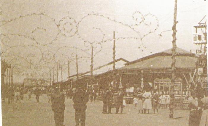 que tenia un chiringuito lo que se ve enfrente era la tombola parece que la estoy viendo todavía en la feria de mayo en esa posición ponían el teatro chino antes de ponerlo en la bascula algunos os acordareis y en esa posición también vino un año una atracción de un motero que subia las paredes verticales con la moto ¿os acordáis? entonces...