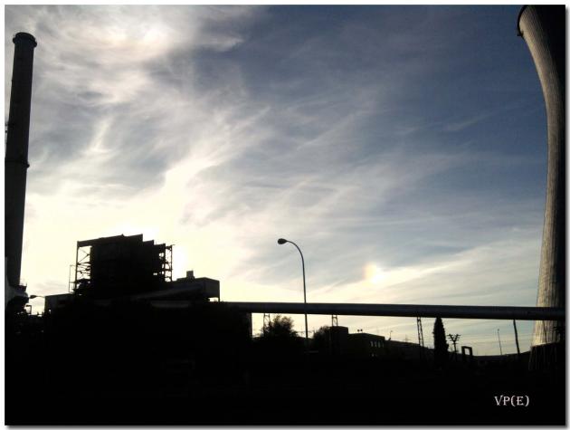 Abrigaros mucho y preparad el bolsillo que llegan las "Navidades". en esas dudas he andado yo con esa foto... Yo pienso que esta tomada desde Asdrúbal, casi desde la puerta de entrada, veo el conducto por donde pienso que discurre la cinta transportadora del carbón desde el parque que queda detrás o delante según se mire de la torre de refrigeración que asoma a la derecha de la imagen, a la izquierda queda la chimenea y aunque no se aprecia por la falta de luz, entre ella y la caldera esta el conducto de salida de humos…