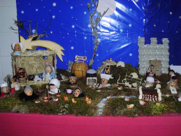 Este es el Belén de cocina, me gustaria pudierais verlo por que es digno de ello, está hecho con huevos, judiones, ajos que son los patos, tiene su sarten de migas con sus chorizos, la matanza, la ropa tendida y hasta el caganet con sus "chorizos" y el rollo de papel, y el cartón de los huevos es el castillo.... bueno hice un video aunque no es muy bueno, pero lo subiré a youtube y asi podreis admirarlo, se ha llevado el tercer premio en el concurso, el segundo ha sido para el de Pediatria y el primero...