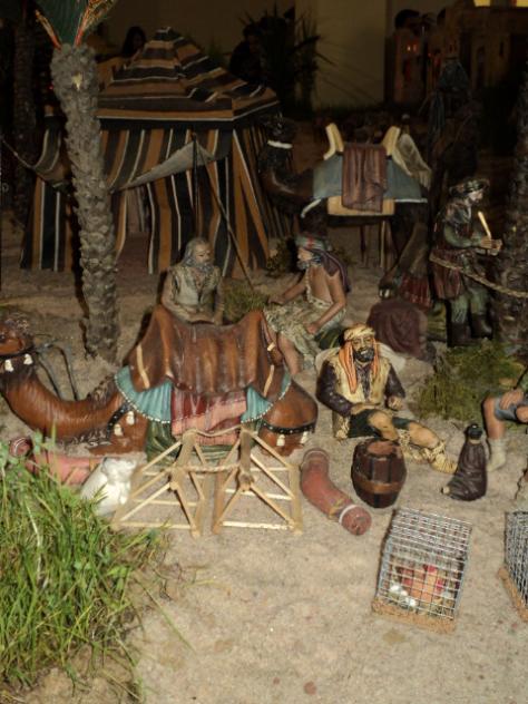 Tras el largo camino hay que descansar, y donde mejor que en el campamento, a la luz de la luna, con un cielo cubierto de estrellas, los camellos deben reponer fuerzas y los comerciantes tambien deben reponer fuerzas y descansar, porque hay que seguir el camino para llegar el dia de Reyes cargados con los regalos....