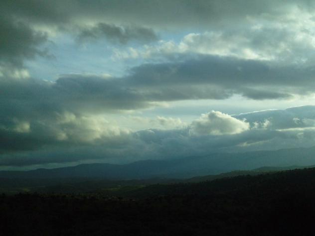 Abrazos Asi es, dimos un paseo por las nubes, y de verdad que estaba bonito el campo, tan verde, y esas preciosas nubes a traves de las cuales el sol daba brillo al campo y lo hacia mucho mas hermoso.... Así estaba el cielo el dia seis, vamos que podriamos decir que fuimos a dar un "paseo por las nubes"..