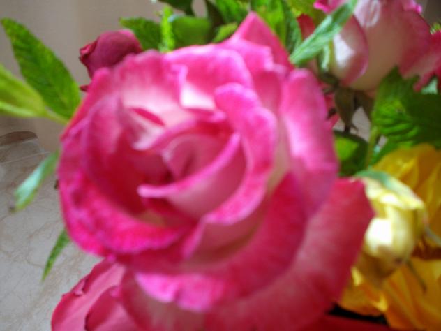 La celebración fue de lomas sencillo, ya te dije que los chavales no podrían estar con nosotros y por ese motivo lo celebramos en la intimidad que también resulto de lo mas reconfortante para afianzar el matrimonio…venga ese beso… Buenas tardes Enriqueta, preciosa rosa de tu patio, tiene un bonito colorido, seguro que tambien tiene muy buen olor, no como las rosas que compramos que ya ni huelen....
