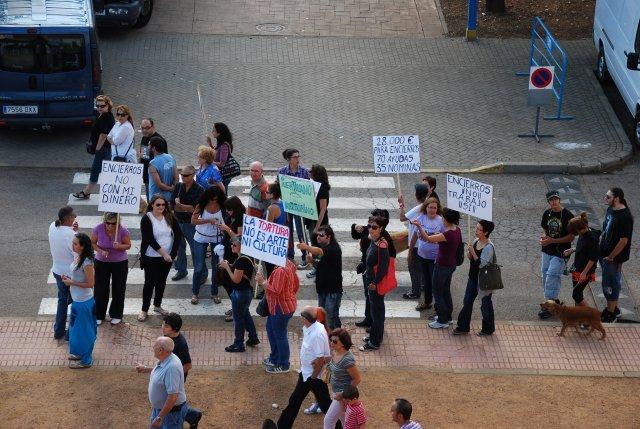 Ya se que no todos los letreros decían, no a los toros, alguno si lo dejaba... Yo pienso que no todos son antitaurinos, ni se manifiestan por ese motivo, además si lees las pancartas te daras cuenta, tambien protestan por el gasto en las circunstancias actuales, recortamos a costa de quien.... han hecho mas manifestaciones en dias anteriores, pero no se han hecho publicidad para que pudieran acudir las personas que quisieran. A mi me da pena ver sufrir a los toros, y por supuesto cuando cogen a algun torero más aun, pero si tengo que mirar y seguir una corrida lo hago, ves,... Bueno éstas personas ayer también pudieron ejercer su derecho en los encierros y supuesto copié alguna foto del diario la Comarca, para el foro, comparta ó no su postura, aquí también dejo constancia de su protesta.