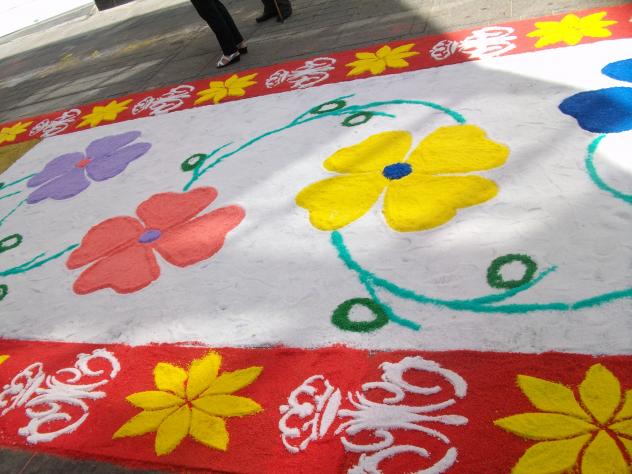 Esa es la mejor recompensa que pueden tener, otros con mucho menos trabajo se cuelgan medallas y buscan el aplauso fácil… que alegre y primaveral, desde luego estaba llena de colorido, por eso digo que cada año se superan y mira que tienen que pensar y discurrir para ir imaginando dibujos y coloridos de un año para otro Otro trocito de la alfombra, es un trabajo tremendo, pero a ellos les compensa que el pueblo valore este esfuerzo.