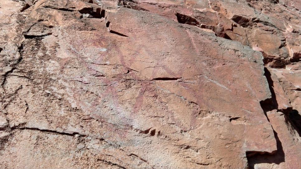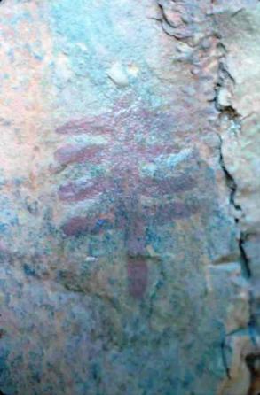 Panel impresionante sin catalogar. Pinturas rupestres geometricas y zoomorfos (arriba) pintados a gran altura