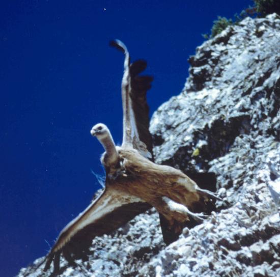 La belleza y embergadura del buitre leonado nos cautivará, como es el caso de esta fotografía, donde se observa su arranque al iniciarlo de entre los riscos de las carpas de Solanilla del Tamaral. Su poderío, su majestuosidad, admiran a quién lo contepla.