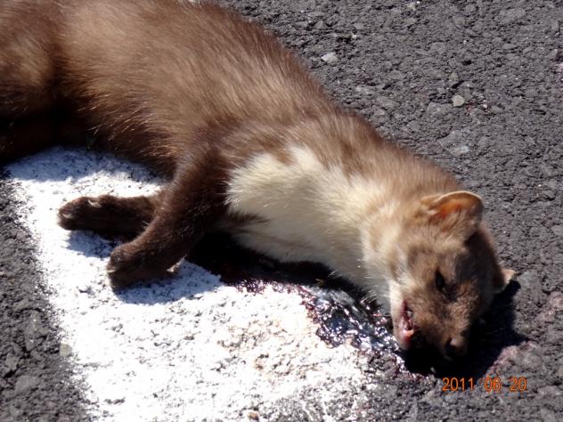 carretera. En esta ocasión ha sido otra Garduña, a veces son erizos o zorros u otros. Espero que algún día comprendamos el daño que causamos a la