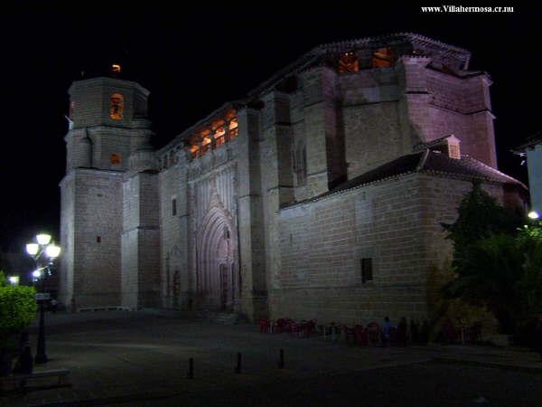 yo manoli saludos desde barcelona castelldefels. Iluminacion nocturna de la parroquia de Villahermosa...que esta dedicada, o sea...tiene por nombre, Nuestra Señora de la Asunción...