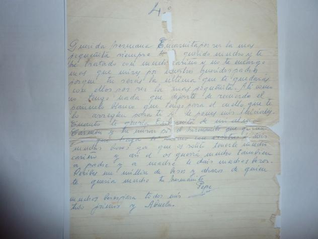 Memoria historica Carta nº4 despedida de su hermana pequeñita