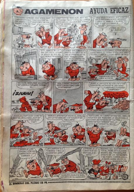 En 1971, Bruguera editó un álbum de historietas del personaje, Agamenón, un mozo mu espabilao (Olé!, núm. 13), y siguió publicándose en otras revistas de la