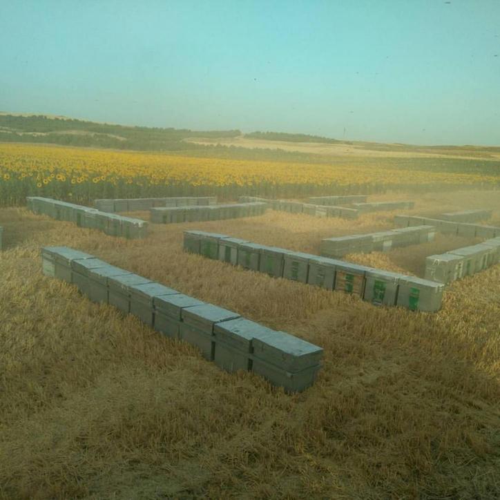El grupo de colmenas dispuesto en el terreno por un apicultor se denomina apiario.
