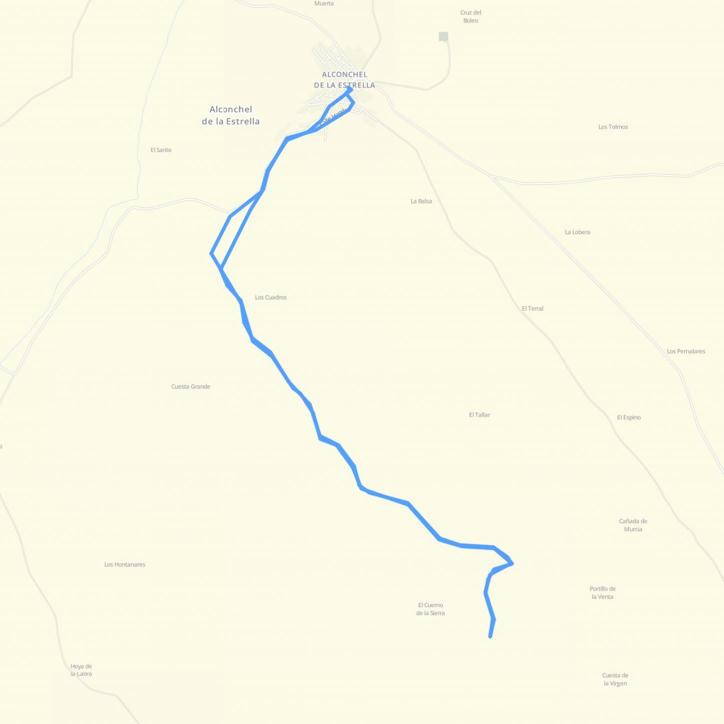 En este cruce seguimos por la izquierda el camino del Pinar, a la izquierda dejamos Los Cuadros, la Ermita de la Virgen de la Cuesta, se nos queda a la derecha, subimos la Cuesta Grande, (933 m), rodeados de
