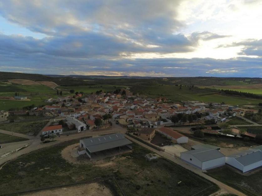 Vista aérea del pueblo entrando desde Villalgordo del Marquesado, ALCONCHEL DE LA ESTRELLA