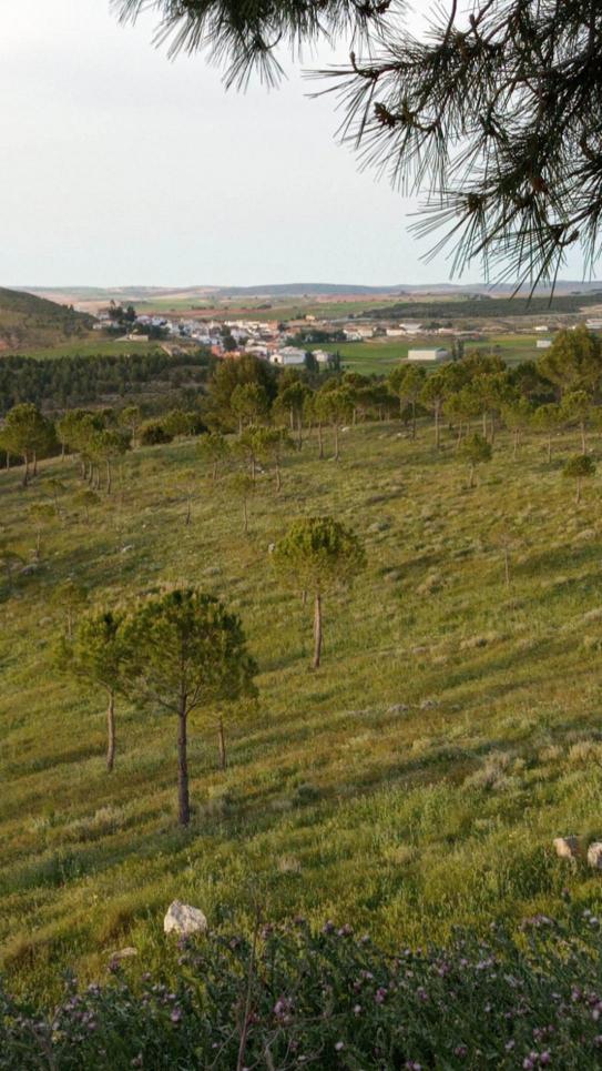 Ladera del cerro, con el pueblo al fondo, ALCONCHEL DE LA ESTRELLA