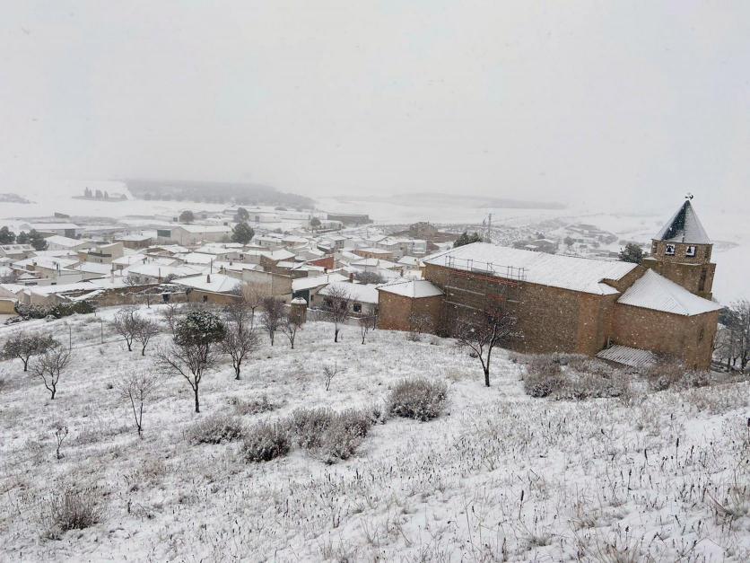 Panorámica desde el Cerro Castillo con la iglesia en primer término, ALCONCHEL DE LA ESTRELLA