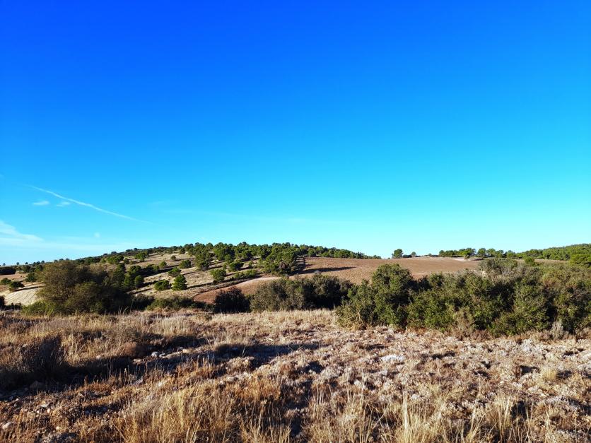 pinos, encinas y variedad de arbustos, como el romero, la jara, el tomillo y el espliego, entre otros.