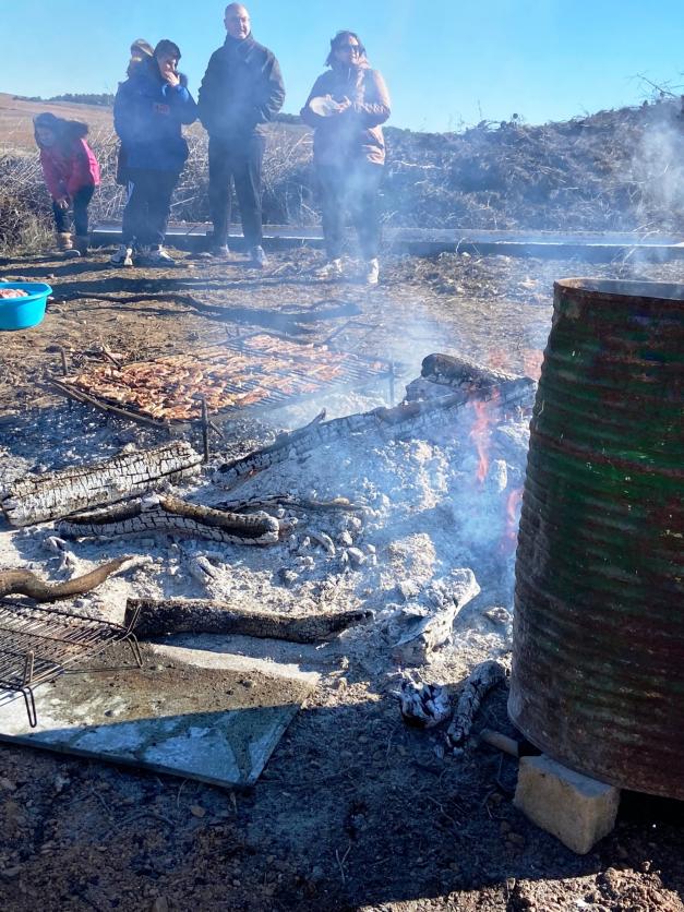 Los somarros haciéndose en una de las parrillas. Celebración de San Antón, ALCONCHEL DE LA ESTRELLA
