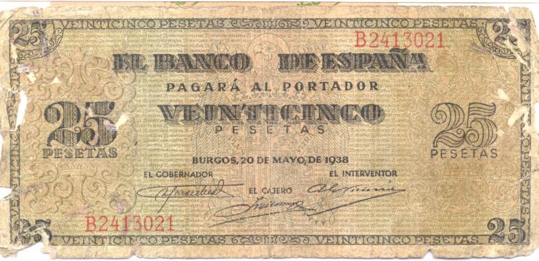 Billete de 25 pesetas, anverso.