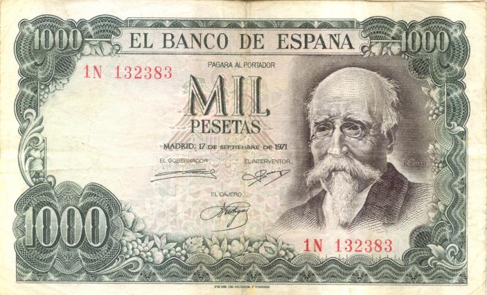 Se trata del billete de 1000 pesetas de 17 de septiembre de 1971.