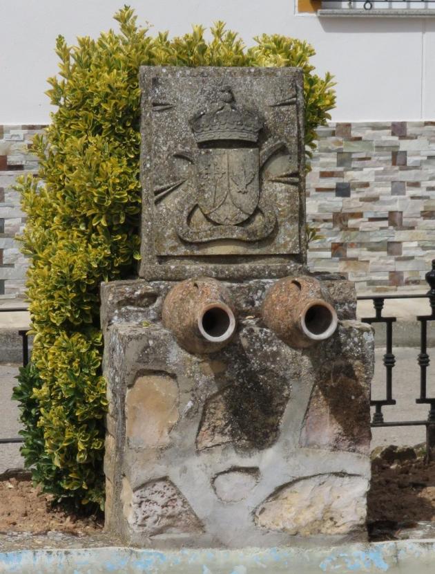 Caños de la fuente y escudo de la villa,