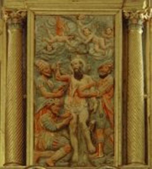 Retablo de San Bartolomé En el retablo vemos el martirio de san Bartolome En este retablo vemos como fue el martirio de San Bartolomé Esto era un jilguero