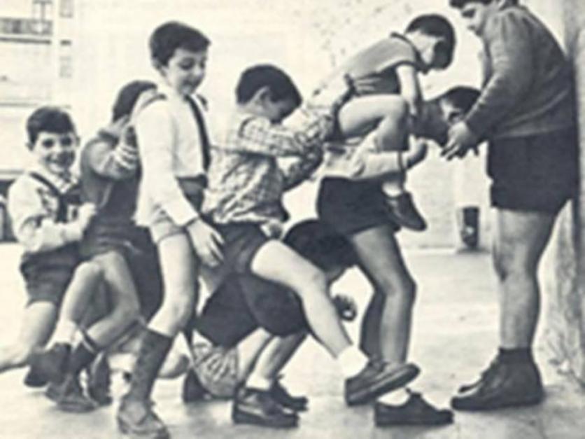 Colegiales jugando al Chinche Boliche (foto antigua),