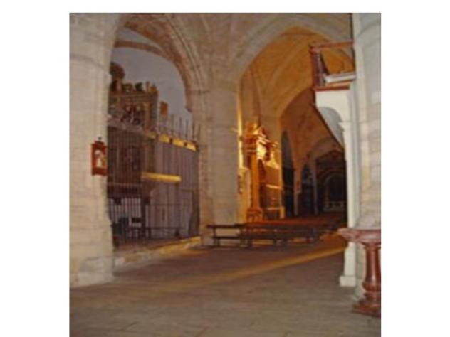 " Vamos a comentar la fotografía que estamos viendo y que esta merece un comentario por nuestra parte, es la nave de la parte izquierda de la colegiata, donde podemos ver una pila de agua bendita donde la gente coge agua para persignarse.