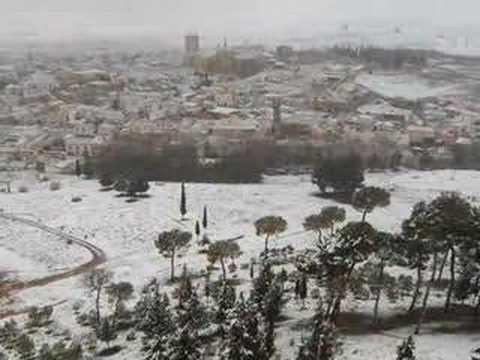 En esta fotografía vemos como Belmonte aparece cubierto de nieve, pués es una imagen tipica de estas fechas invernales y hemos de comentar que la abundancia de nieve cae por estas fechas.