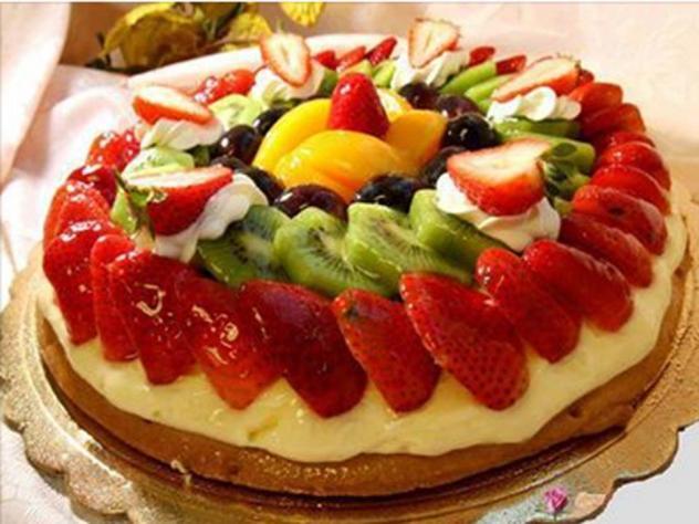 Vemos la tarta tan bella hecha con fruta de este tiempo como son las fresas y los aguacates.