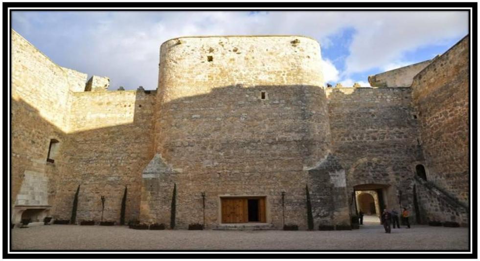 Patio de armas del castillo de Belmonte y en el centro vemos la torre del homenaje,