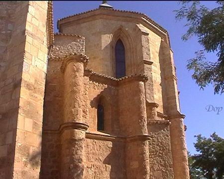 Esta fotografía corresponde a la fachada de Ábside de la colegiata de San Bartolomé Apóstol y patrón de la villa de Belmonte de Cuenca vemos que su construcción tiene dos clases de piedra estos nos indica que se hizo en dos tiempo o también puede ser que antes de esta el edificio hubiera otro