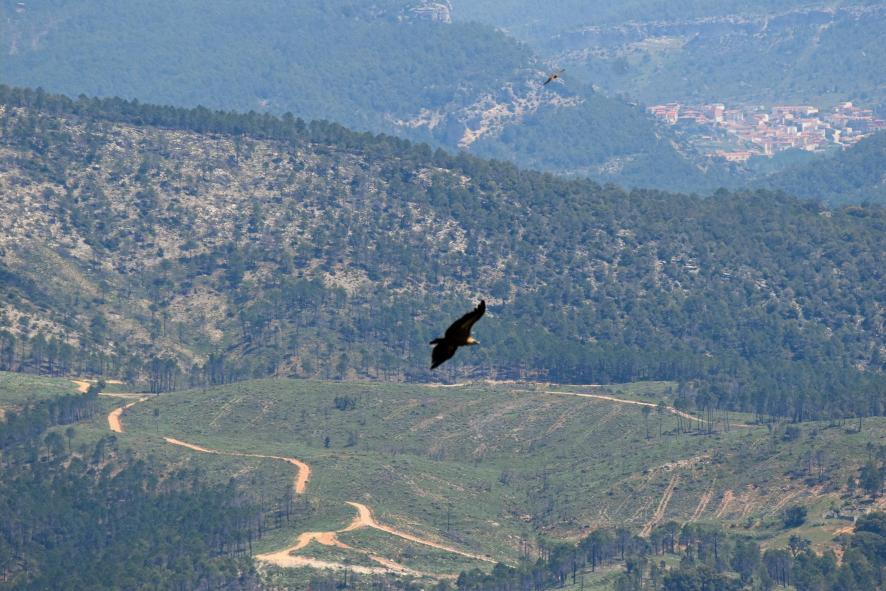 Sobrevolando el estrecho con la belleza del pueblo al fondo,