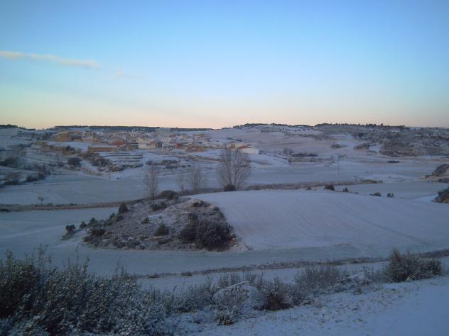 Vista del pueblo nevado,