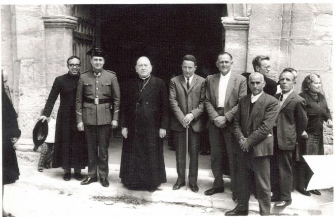 Esta Foto es del año 1965 y en ella aparecen el Alcalde D. Jesus Saiz, Julio Palenciano (Juez de Paz), Mariano (Tte Alcalde), Benito Martinez (Secretario) y Angeles (mujer de Alejandro el Aguacil). A la izqierda hay un Seminarista que no conozco, Tambien esta D. Ignacio (Parroco)