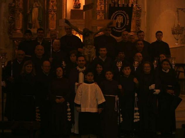 Y si en la foto se os viesen las caras.ya le vale al fotógrafo, la próxima con FLASH eh!!! Aqui se supone que estan todos los hermanos de la hemandad mas el cura y su monaguillo, pero hay que decir que faltan los hermanos nuevos que se han apuntado este año y que espero que se apunten muchos mas.