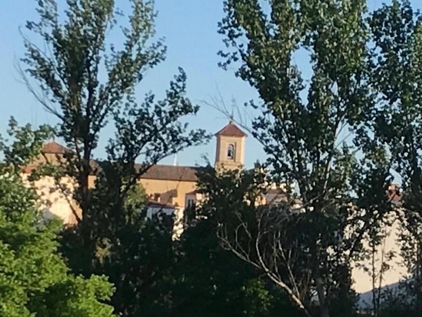 Vista de la iglesia tras los árboles, LANDETE