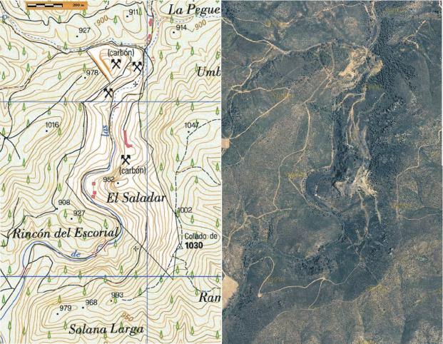 Vista aérea y topográfica: Minas de Henarejo,