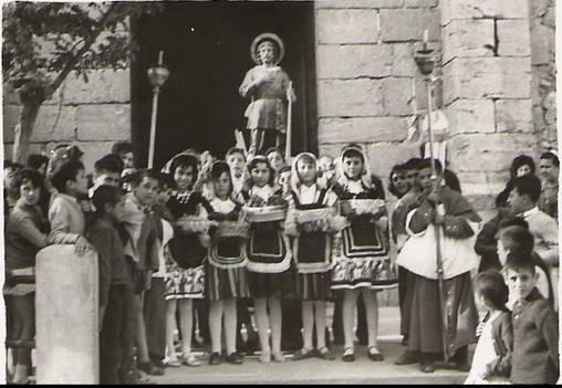 Era sobre 1962.Haciamos la ofrenda a San Isidro.De izquierda a derecha, somos, MªCarmen, la de Nin, Paquita, la de Yeyo, Vicen, de la Fina, Angelita, de Marcelino, Conchi, de la Máxima.Gracias por el piropo. Solo se las de la izquierda: Carmen la de Nin y Paquita de Yeyo y el monaguillo Pelayo. Me encanta ver estas fotos antiguas, la pena es que nunca conozco a nadie.