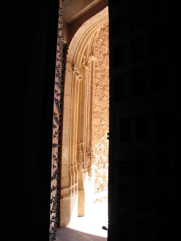 arco de medio punto con arquivoltas muy pequeñas. Tanto los arcos de medio punto como los arcos conopiales están sustentados por pilares muy finos con