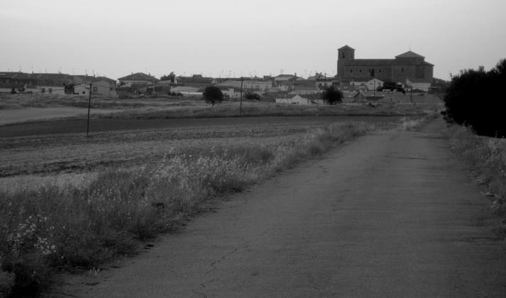 Fotografía de Tribaldos tomada desde el camino que va al río Bedija. El blanco y negro nos hace viajar al pasado ¿verdad? ¿no os imagináis las eras llenas de tribaldeños para separar la mies? ¿no os imagináis a muchachos sentados en los trillos tirados por mulas dándo vueltas sobre la parva?