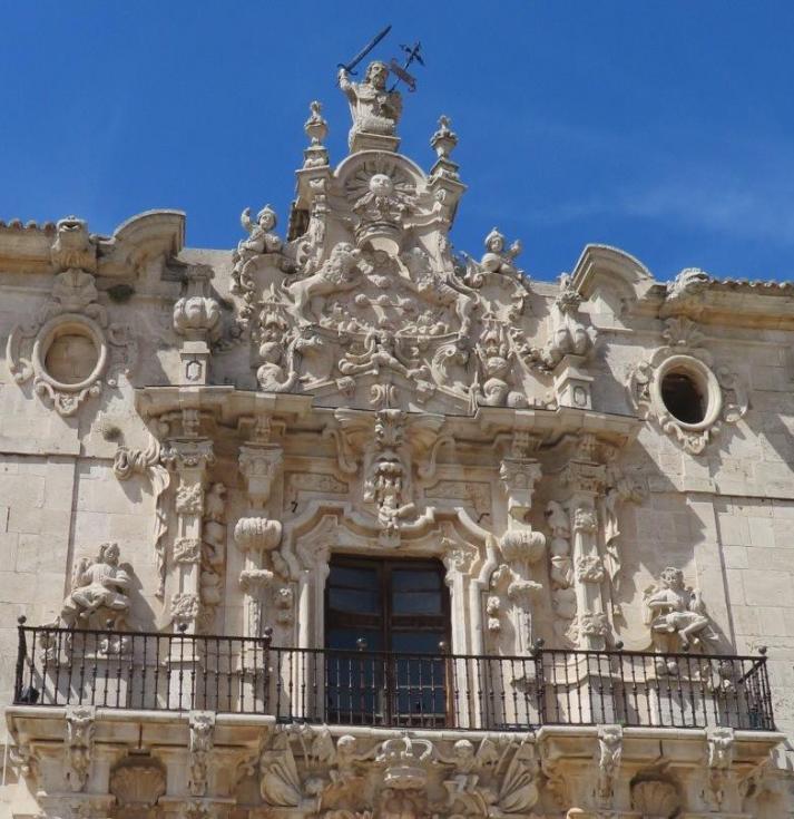 Monasterio, detalle del balcón de la portada,