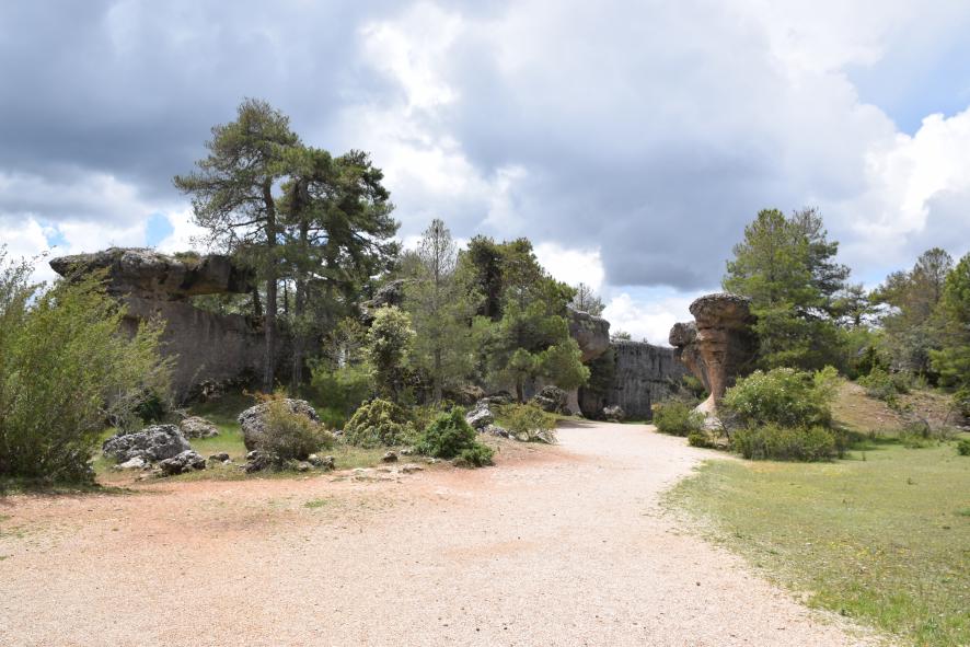 Paisaje de rocas y pinos,