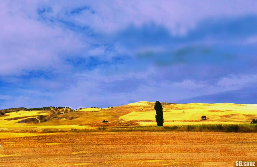 Paisaje con campos y un chopo,