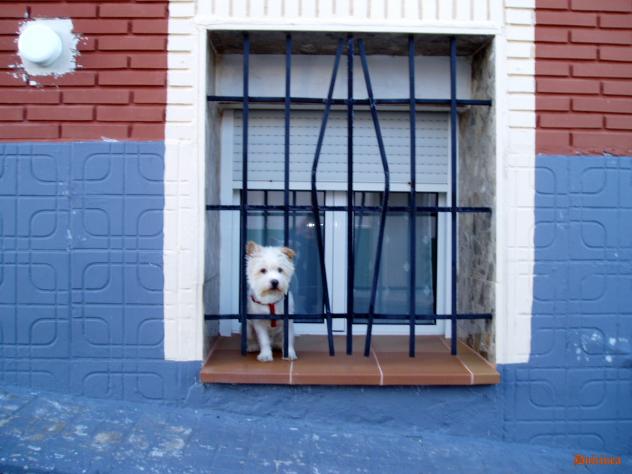 Perrito Milú en la ventana,
