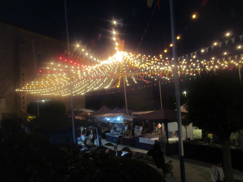 Plaza con el mercado medieval ya de noche,