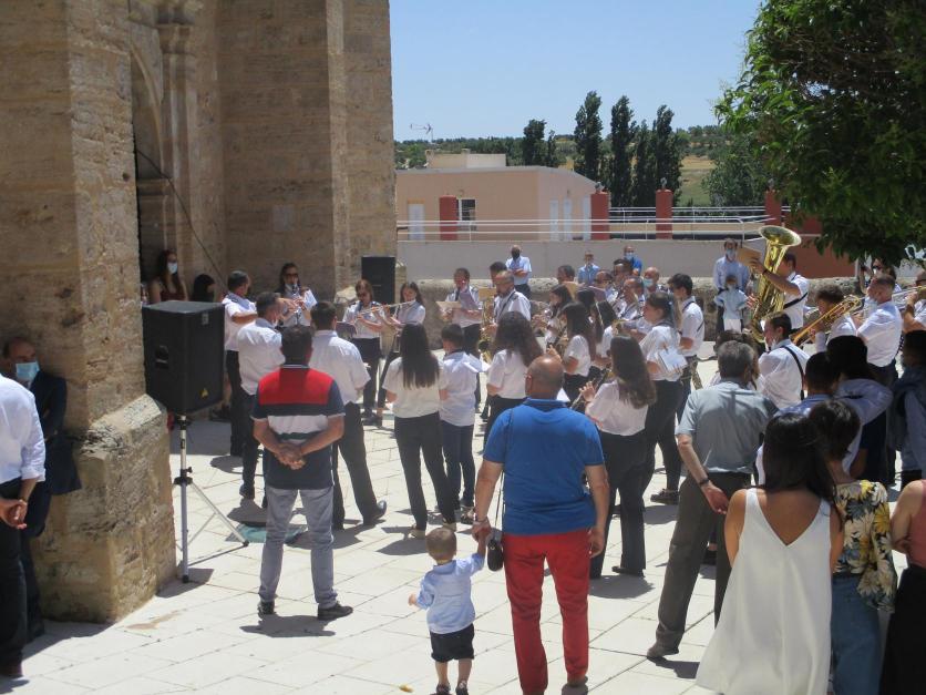 La banda de música interpretando los acordes del himno de la nación,