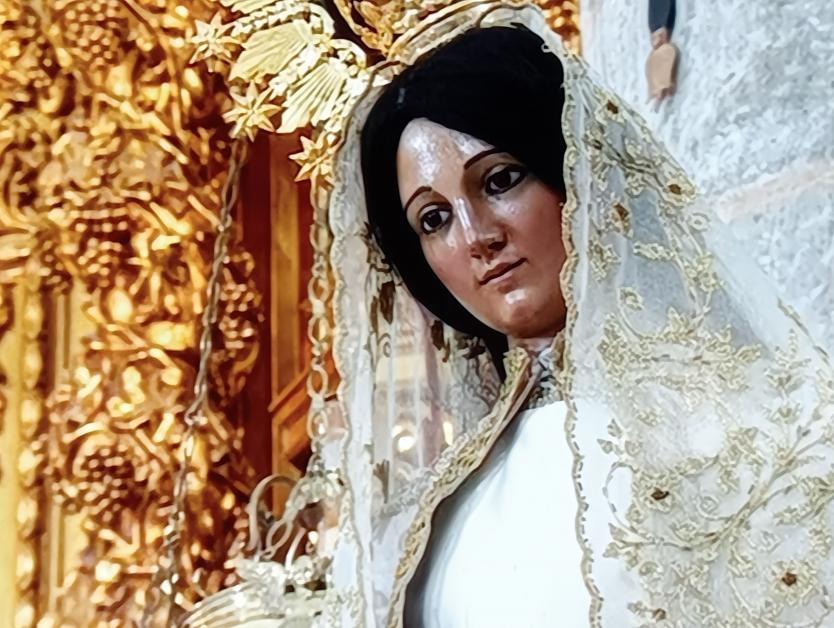 Primer plano de la imagen de la Virgen del Rosario,